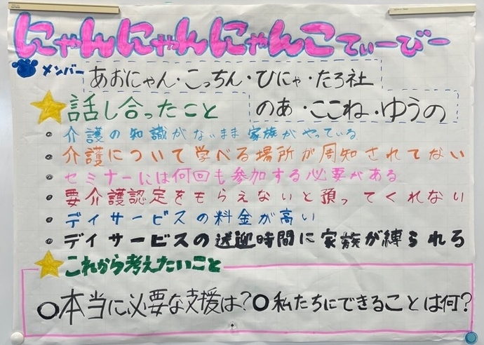 第3回のなかよしカフェにてそれぞれ6つのグループに分かれて発表を行いました。